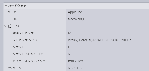 持ち運べる仮想化環境を作る必要が出てきたので Ryzen とかが載ったミニ PC を買おうかなぁと思っていたら、だいぶ前に査収して放置していた Intel Mac Mini 最後の 2018 があることを思い出した。