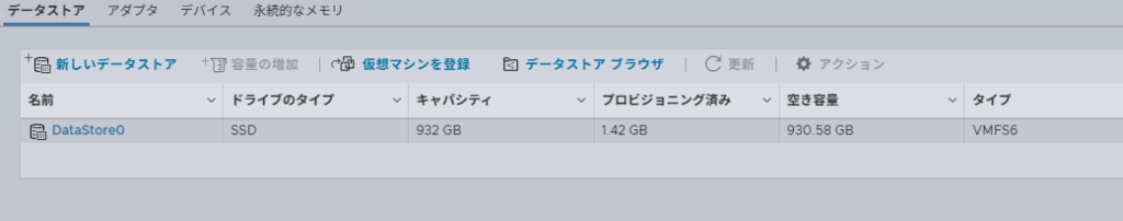 SSH でログインしてパーティションを切って vmfs でフォーマットするっていう強硬策は出来るらしいけど、Google の AI さんにやるな。と言われたのでやめる。