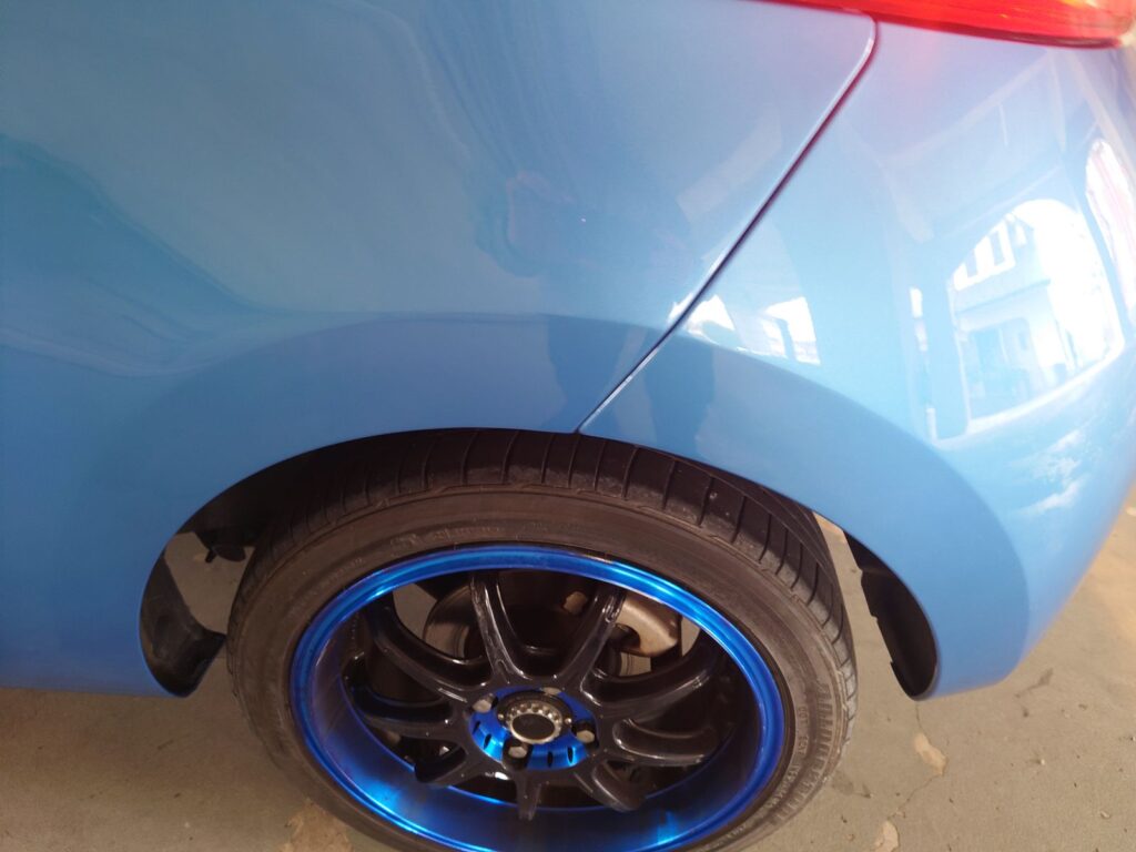 リアタイヤの上の凹みも完璧な仕上がり。歪みとか出るかもという話だったけど、まったく分からん。
